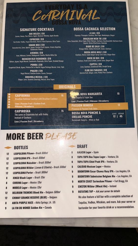 Bossa Nova Brazilian Cuisine, located in Los Angeles, offers a diverse menu with options for every palate. The restaurant provides a casual dining experience with vegan and limited vegetarian choices available. Customers have praised the exceptional customer service, with servers like Andre going above and beyond to enhance their dining experience. The menu includes dishes like garlic fries, Shepards pie, Coxinhas, and Chimichuri Parrilha, all leaving diners satisfied. The cozy atmosphere, late-night hours, and diverse menu make Bossa Nova Brazilian Cuisine a popular choice for those seeking a taste of Brazilian flair. Don't miss out on the delicious feijoada, gnocchi, and flavorful chicken dishes. Come experience a blend of Brazilian flavors and fantastic service at Bossa Nova Brazilian Cuisine.